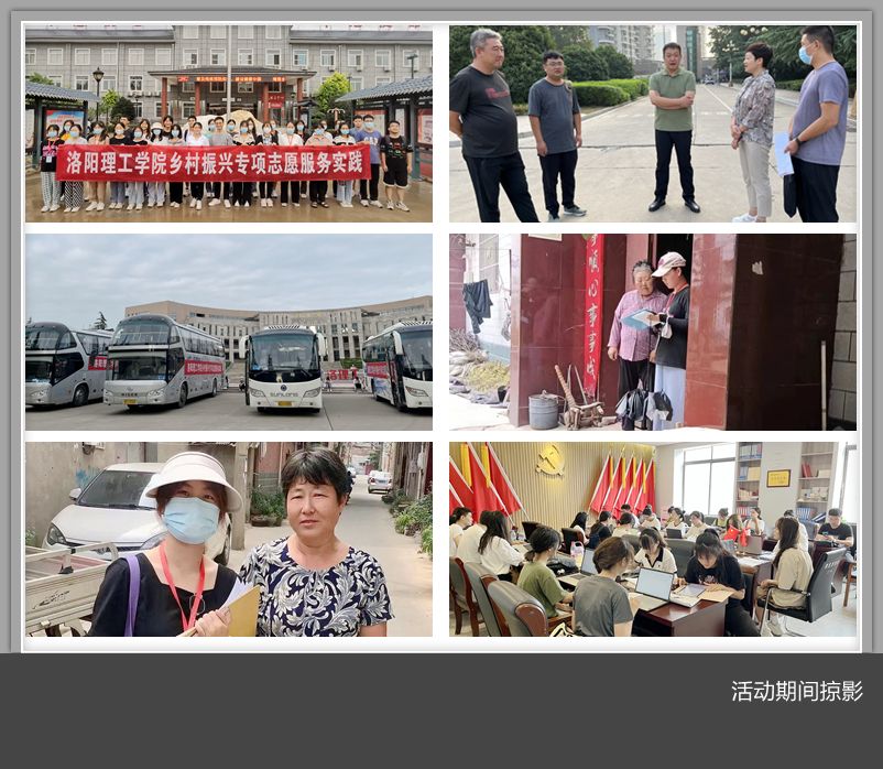 实践团招募近200名大学生志愿者提前返校,经过培训后由辅导员带队于8月19日至29日期间分批走进洛龙区11个镇(街道)86个社区,针对2013年以来各级财政支持改造的农村户用厕所和农村公厕进行了逐村逐厕拉网式入户排查。工作期间,全体参与人员冒酷暑、战高温,恪尽职守、认真负责,确保每项基础台账真实准确。截止8月29日,共入户41000余户,发现问题户厕1400余个。活动期间,学生工作处、校团委、后勤管理处、保卫处、校医院等部门通力协作、高效配合,高标准、高质量、圆满地完成了此次摸排任务,展现了“洛理工质量”,受到洛龙区区委区政府的高度评价。