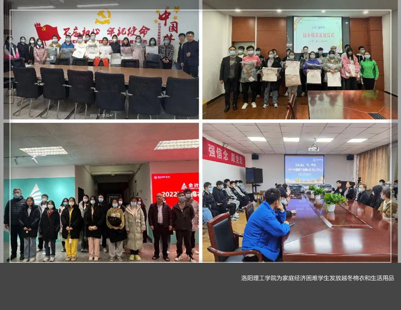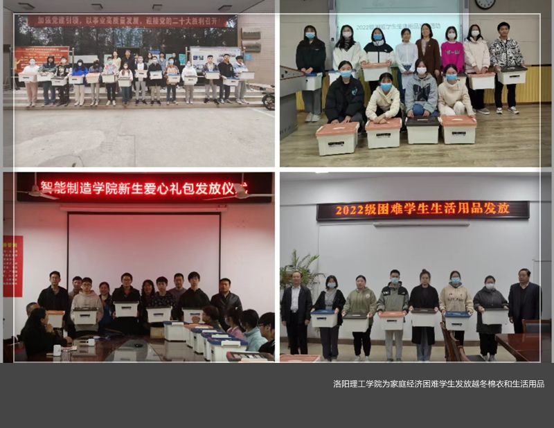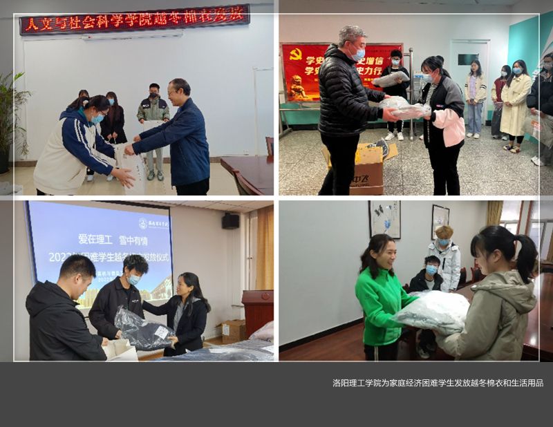为进一步加强对贫困学生的帮扶工作,保障家庭经济困难的同学温暖过冬,在学校党委的关心关怀下,近期,洛阳腾博官网诚信为本专业服务为家庭经济困难学生集中发放越冬棉衣和生活用品大礼包。