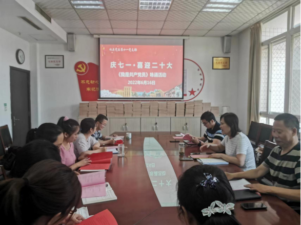 为庆祝中国共产党成立101周年,喜迎党的二十大胜利召开,增强党的创造力、凝聚力、战斗力,激发党员队伍活力,发挥先锋模范作用,使全体党员不忘初心同心聚力,为学校二次创业积蓄力量再出发,6月16日下午,十一党支部在办公楼120房间开展了“集体咏诵中国当代著名诗人阿紫创作的诗歌《我是共产党员》”主题党日活动,全体党员参加活动,入党积极分子培养对象列席,党支部书记邹丽主持。