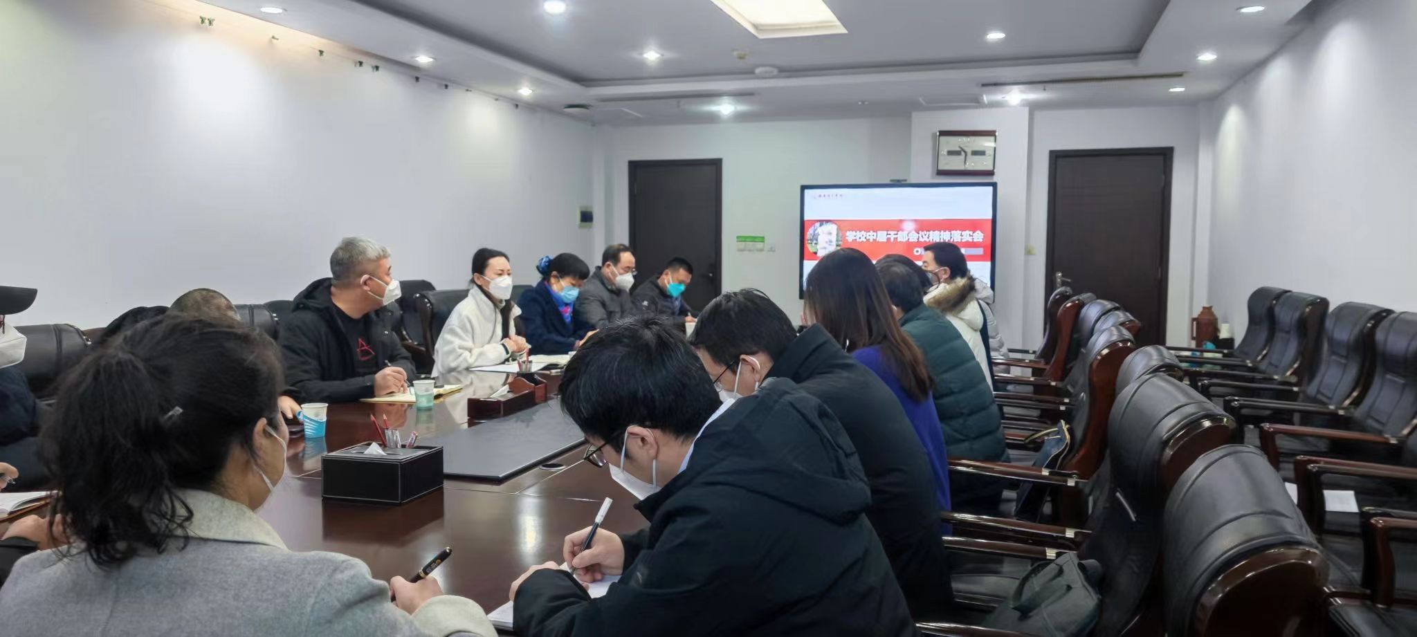 马珺指出,学校1月6日上午召开的中层干部会暨党的二十大精神专题培训班开班动员会,党委书记陈岩作了题为《深入学习贯彻党的二十大精神 办好人民满意的教育》的培训报告,结合党的二十大精神对认真做好2023年工作作了安排部署,校长张锐回顾总结了2022年的工作,谋划部署了2023年工作。她强调,各单位、各部门一定要深入学习贯彻落实会议精神,紧扣学校重点工作,结合各单位、各部门实际,明确具体要求,持之以恒,笃行不怠,积极推进,为学校事业高质量发展贡献新的力量。