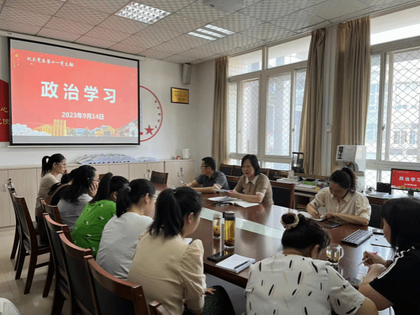 9月14日下午,十一党支部组织全体人员在办公楼120房间进行政治学习,党支部书记、财务处处长邹丽主持。