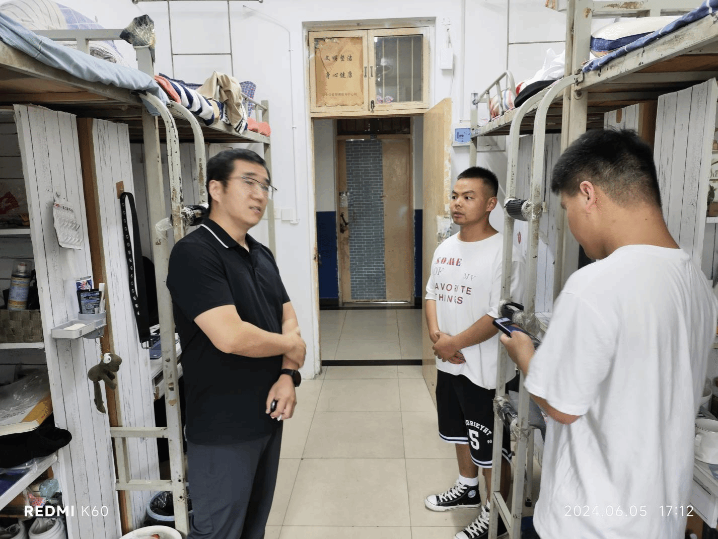 邹丽、黄平、于石磊与带班辅导员交流沟通了学生管理有关情况,实地走访了所联系班级学生宿舍,亲切地询问同学个人基本情况、学习生活情况以及遇到的困难等,解答同学们的困惑,回应同学们的意见。邹丽勉励各位同学葆有青年大学生的志气和活力,做好学业规划,同学间相互帮助、友好相处,既增长知识能力,又收获同学友情,使大学学习生活充实而富有成效。她表示,后续将与学校相关部门进行沟通和反馈,帮助同学们解决思想、学习、生活、发展等方面的实际问题。