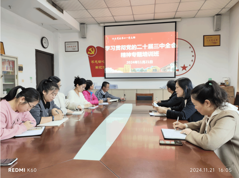 为深入学习贯彻党的二十届三中全会精神,根据学校统一部署和要求,11月21日至22日,机关党委第十一党支部举办科级及以下干部、党员学习贯彻党的二十届三中全会精神专题培训班,财务处科级及以下干部、党员参加培训,党支部书记、财务处处长邹丽主持。