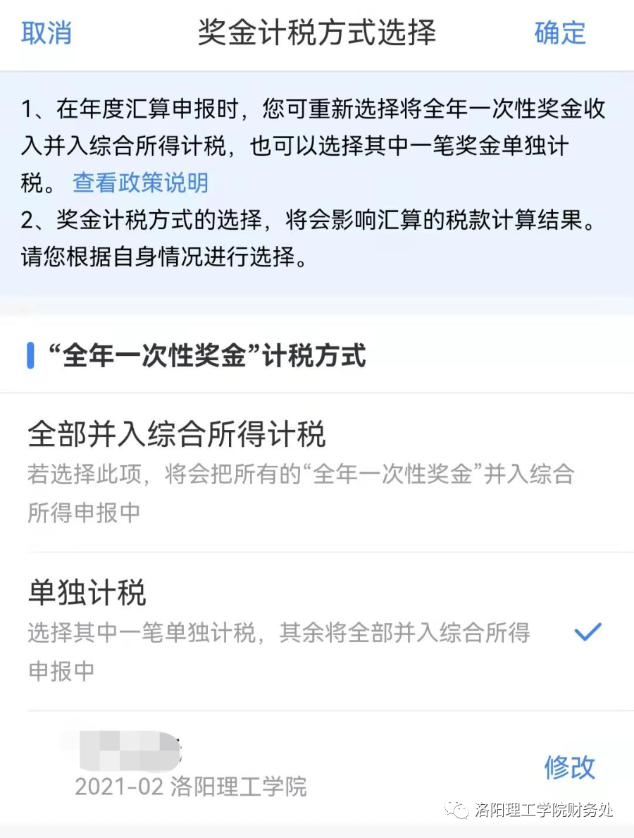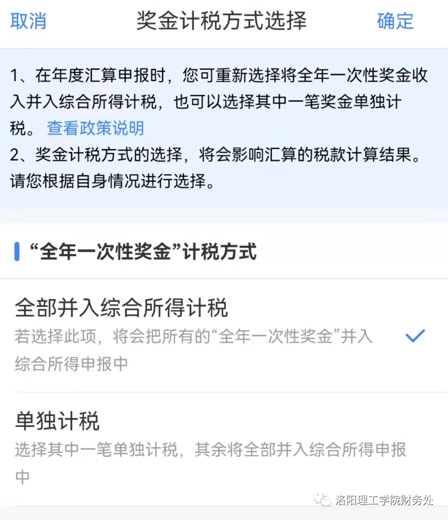 方式一 全部并入综合所得计税:选择“工资薪金”,在“全年一次性奖金”计税方式里先选择“全部并入综合所得计税”--“确定”--“返回”--“下一步”,左下角会显示应退税额或应补税额;