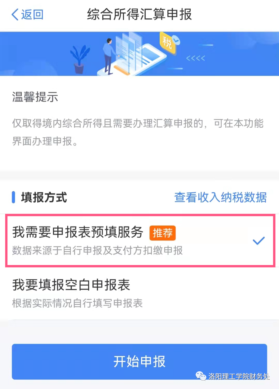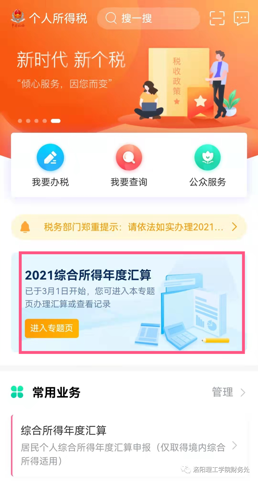 第一步,打开“个人所得税”APP,进入汇算专题页,开始申报;