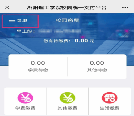 第一步:进入“洛阳腾博官网诚信为本专业服务财务处”微信公众号,点击“学生缴费”