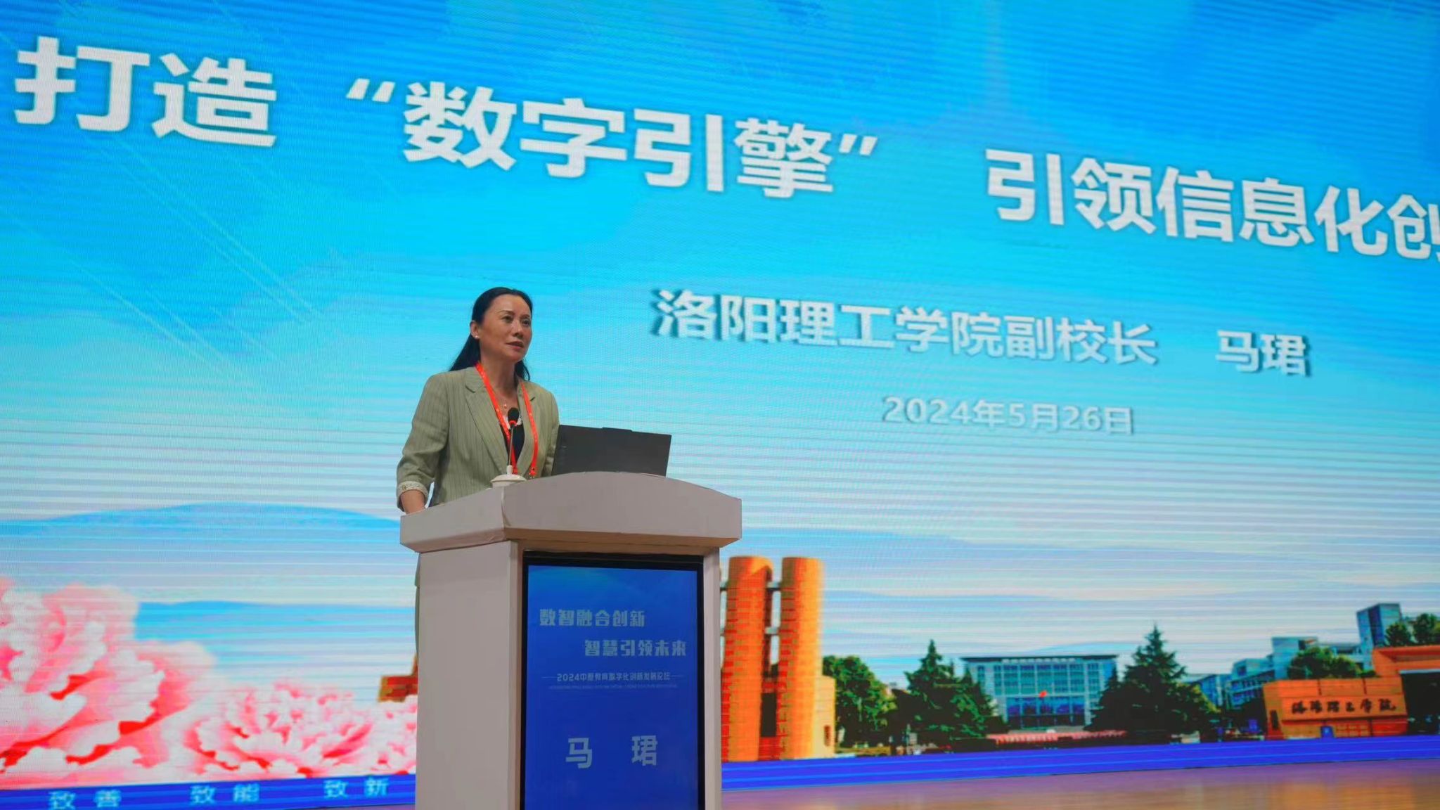 5月26日,2024中原教育数字化创新发展论坛在郑州举行。本次论坛以“数字融合创新 智慧引领未来”为主题,由河南省教育厅主办,黄河科技学院、河南省教育信息化协会承办。省教育厅党组成员、副厅长朱自锋,教育部科学技术与信息化司教育信息化与网络安全处处长任昌山,黄河科技学院执行董事、副校长杨保成,河南省教育信息化协会会长王新杰出席并在开幕式上致辞。省教育厅相关处室主要负责同志,以及全省160所高校信息化分管领导和管理部门负责人参加会议。论坛由省教育厅科技与信息化处处长杨学勇主持。我校副校长马珺做了题为《打造‘数字引擎’ 引领信息化创新发展》的专题报告。