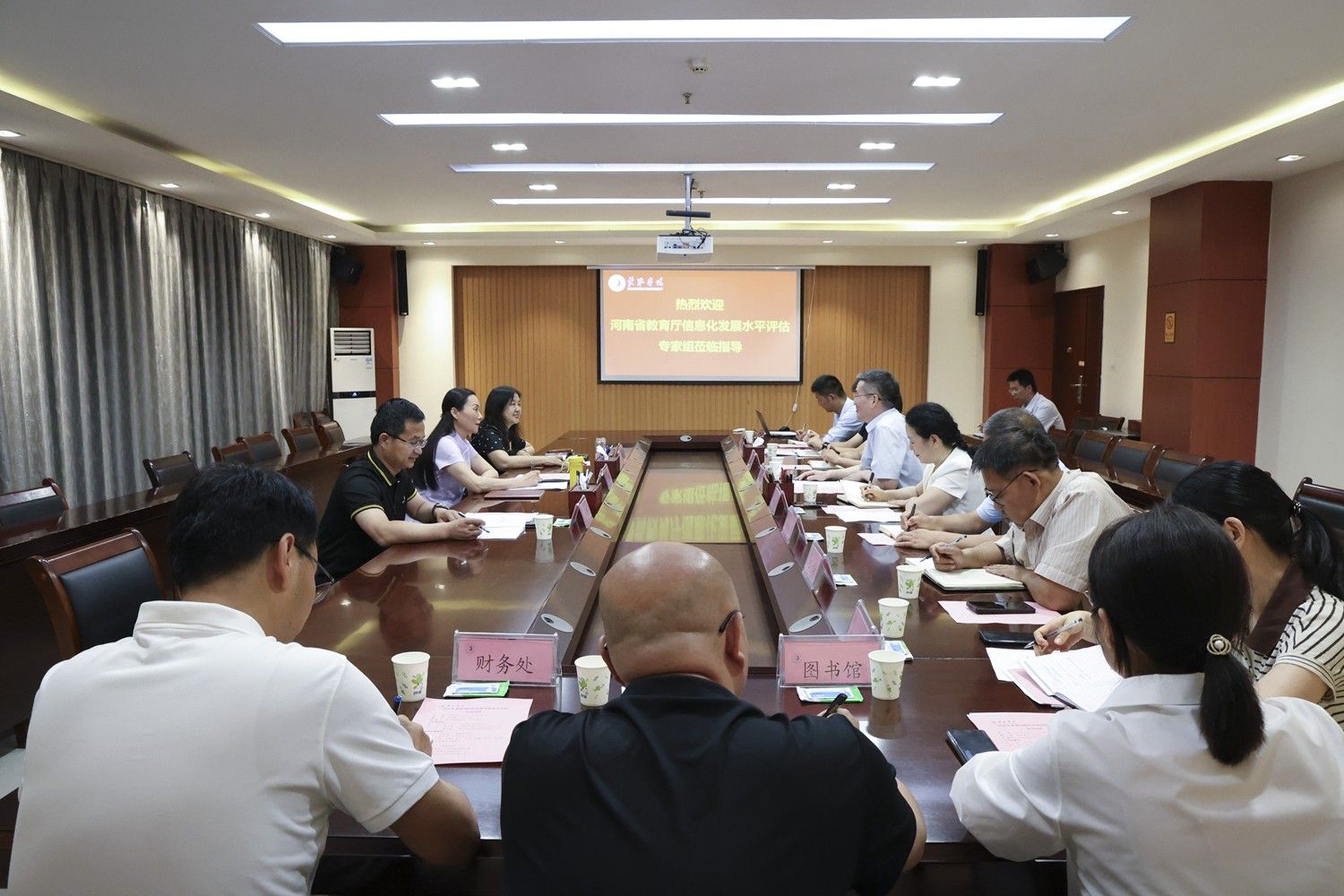 6月4日下午,我校副校长马珺作为河南省本科高校信息化发展水平评估第六组组长,带队赴黄淮学院开展考核工作。黄淮学院党委书记刘先省、副校长耿红琴,教务处、学工处、人事处、科研处、财务处、后勤处、保卫处、图书馆、信息化办公室等部门负责人参加评估汇报会。会议由耿红琴主持。