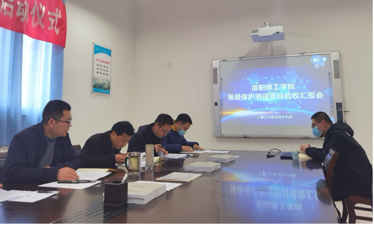 2022年3月18日上午,信息化技术中心召开了信息系统安全等级保护测评项目验收汇报会,项目承建单位、专家组、信息服务部以及网络运行部的相关人员出席,会议由中心主任李传锋主持。
