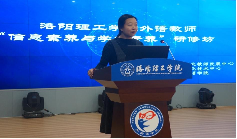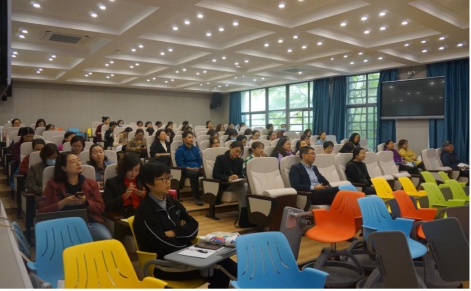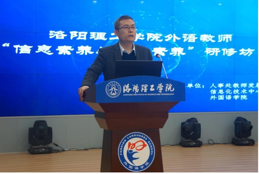 2021年10月14日下午,由人事处教师发展中心、信息化技术中心、外国语学院联合举办的“外语教师信息与学术素养提升研修坊”在开元校区外国语学院XE206报告厅举行了开班仪式。自愿报名的参训外语教师达70余人。信息化技术中心主任李传锋、外国语学院院长易明及我校专业建设首席教授李蒙出席了开班仪式。开班仪式由外国语学院副院长张琳主持。随后,李蒙教授开启了研修坊的第一讲。