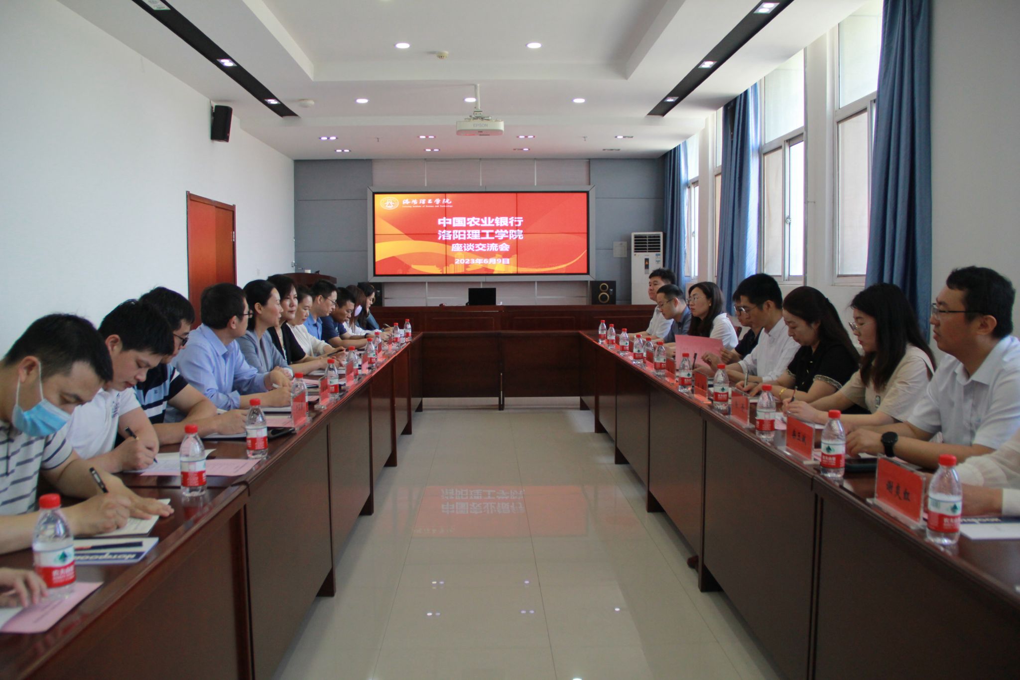 69日上午,中国农业银行总行网金场景处处长赵林一行到我校调研银校合作智慧校园建设情况,座谈会在图书信息中心705会议室举行。洛阳分行副行长石亚玲、河南省分行网金部总经理助理柴玉斌、副校长马出席座谈会,财务处、信息化技术中心负责人等参加座谈会。会议由财务处负责人主持。
