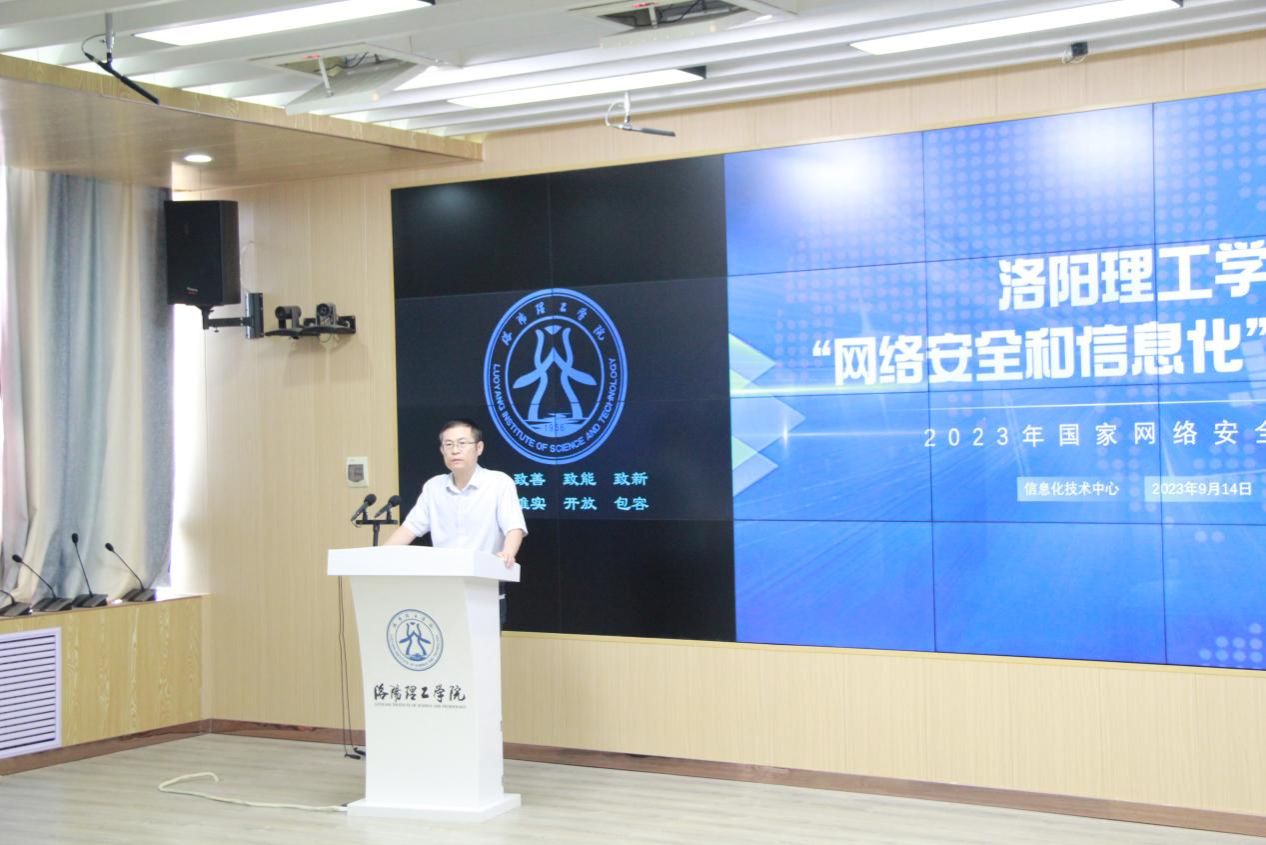 9月14日下午,信息化技术中心在王城校区公共教学楼AE507举办了我校“网络安全和信息化”技能培训会。校网络安全和信息化领导小组办公室主任李传锋、信息化技术中心副主任梁凯、全校各部门信息管理员和网络管理员以及网络安全领域行业专家参加本次培训会,培训会由信息化技术中心张骥主持。