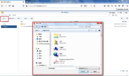 上传文件操作,可以点击左上角上传按钮,然后再浏览电脑目录下的文件上传