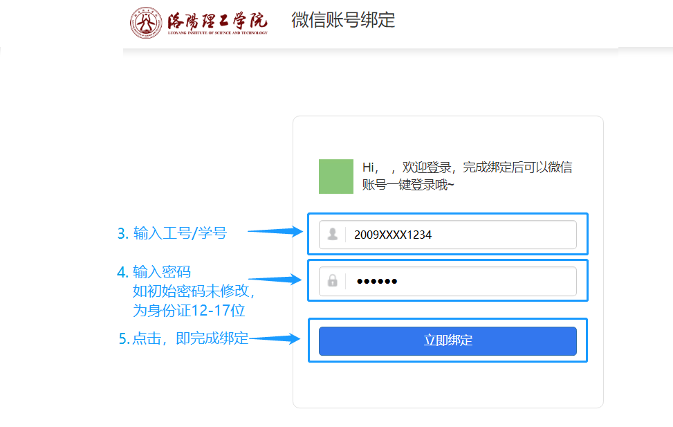 (2)微信扫码:首次使用将个人的工号/学号、密码绑定至个人微信,以后即可扫码登录。此种方式安全性和便捷性更高,推荐使用。