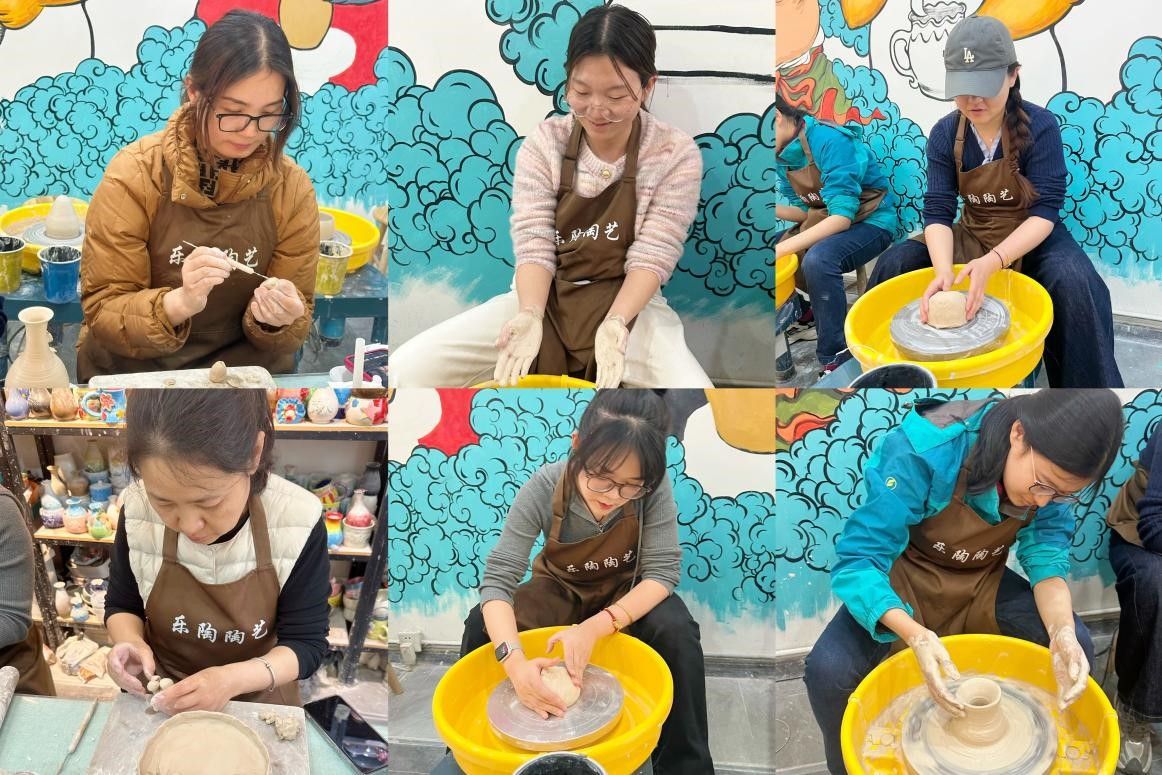 3月7日下午,中心为女职工特别策划了“指尖上的艺术”陶艺DIY活动。女教职工化身“当代女陶工”,在专业老师指导下,从揉泥塑形到彩绘装饰,专注投入创作过程。素坯在转盘上渐次成型,泥浆沾染衣袖却更添趣味,最终呈现的花瓶、茶盏等作品各具巧思。活动现场洋溢着欢声笑语,女教职工们在慢时光中感受传统技艺的魅力,用艺术创作纾解工作压力。