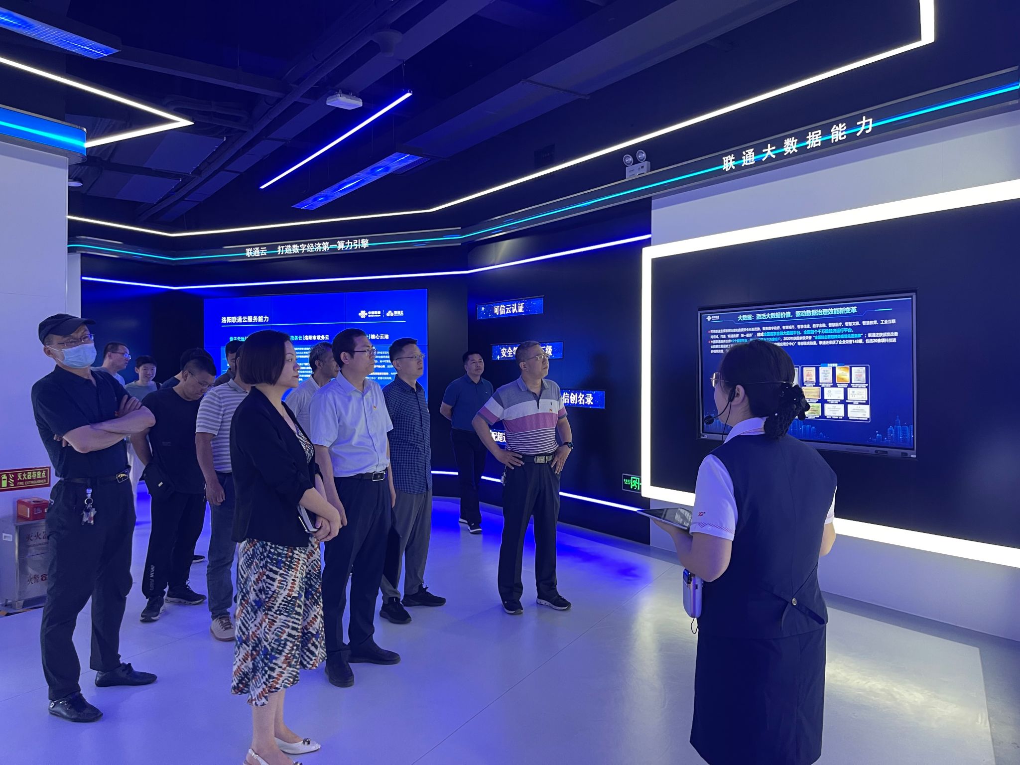 首先,全体党员参观了洛阳联通在智慧城市、智慧校园、智慧农业等方面的典型项目,详细了解了联通公司在5G、物联网、云计算等领域的技术创新和应用成果。通过参观学习,大家进一步深切体会到中国联通作为央企的责任担当和在科技创新等方面所做的贡献,深刻感受到企业在数字化浪潮下以党建促发展的浓厚氛围。
