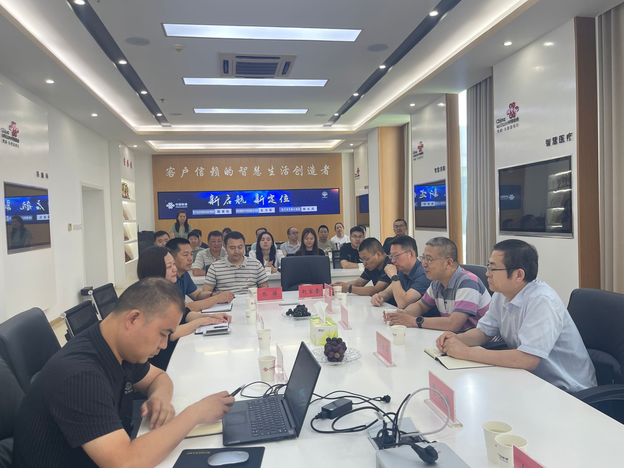 随后,党员们与联通公司的技术人员进行了座谈交流,就如何深化校企合作,促进相互学习、实现资源优势互补,进而推动学校信息化建设、提高教育教学质量等问题展开了热烈讨论。会上,刘庆伟同志表示,中国联通在数字化转型方面的成功经验值得学校借鉴和学习,信息化技术中心将结合学校的实际需求,积极探索适合学校的信息化发展新方向,进一步提高教育质量和服务水平。