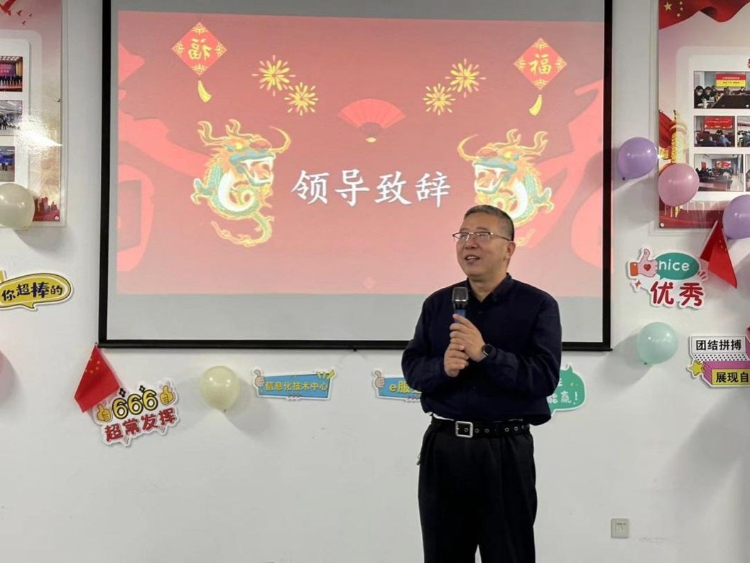 12月28日,信息化技术中心“庆元旦·迎新春”活动在王城校区图书馆7楼活动室举办。信息化技术中心书记刘庆伟同志做活动致辞,中心主任李传锋认真回顾了2023年取得的成绩,展望了2024年工作,并向教职工致以新年祝福。