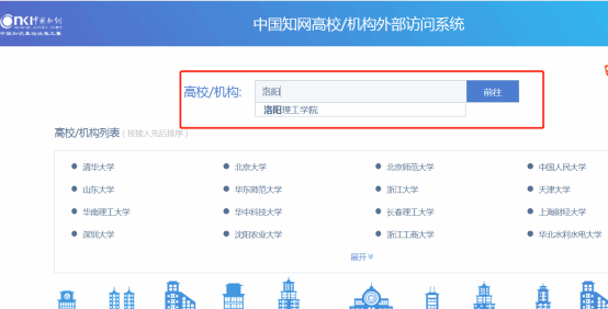 1.点击 https://fsso.cnki.net/,在高校机构里输入洛阳腾博官网诚信为本专业服务