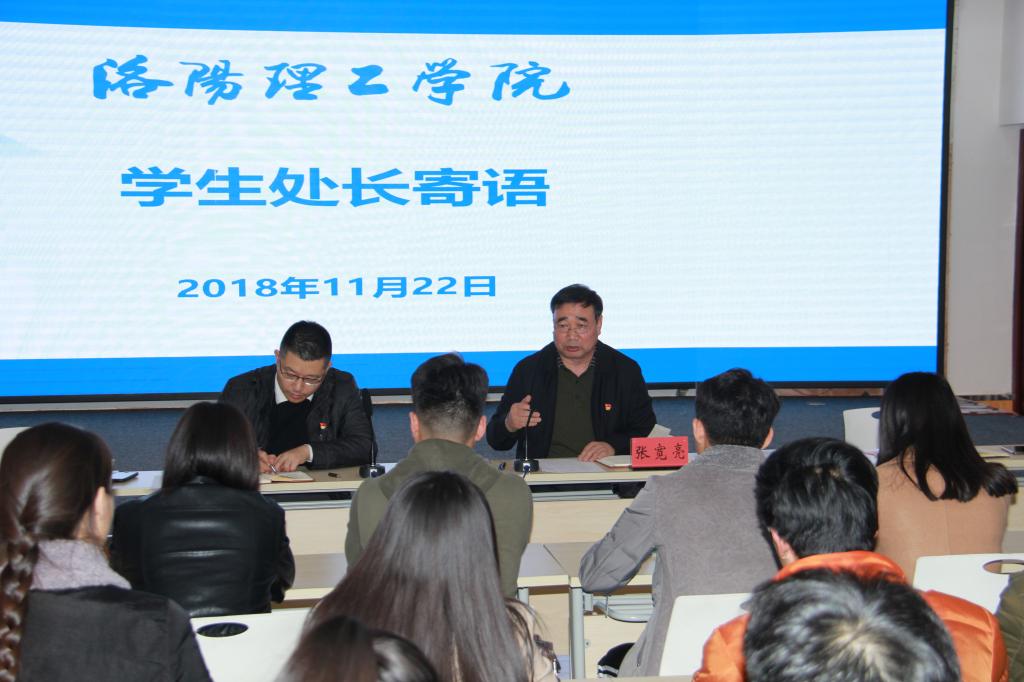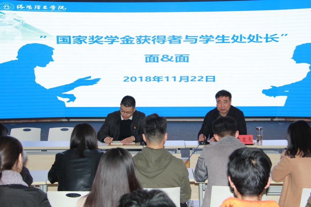 11月月23日晚,国家奖学金获得者与学生处长面对面访谈活动在王城校区大学生心理健康教育中心情景剧场顺利举行,学生处处长张宽亮作客访谈活动,会议由学生处副处长王学峰主持,来自各学院的2018年获得国家奖学金的50名学生参加了此次访谈活动。