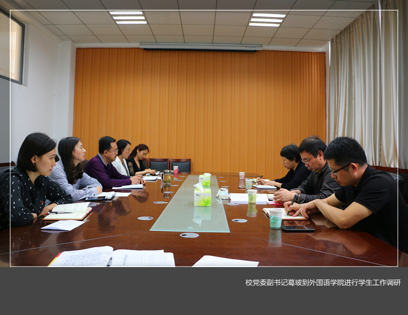 调研座谈会上,葛玻听取了外国语学院负责人对学院就业、教学、辅导员队伍建设、学生课外学术科技活动、学生社团与品牌建设、学生特殊群体帮扶等工作的汇报。双方就学院在发展中面临的问题进行了深入探讨,就学生的分类管理、学工队伍建设、教学与教育一体化建设、学院就实习就业一体化工作的开展进行了深入交流。