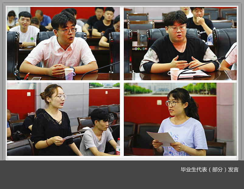在座谈交流中,毕业生踊跃发言,畅谈对大学生活的感悟,总结在校求学的丰硕收获,表达对母校的眷恋之情,展望对未来的规划与憧憬。同时,结合自己学习生活,为母校科学发展建言献策。各职能部门负责人对毕业生提出的相关问题一一进行了解答。