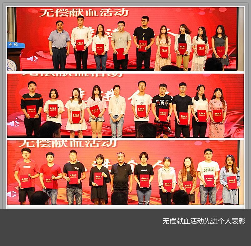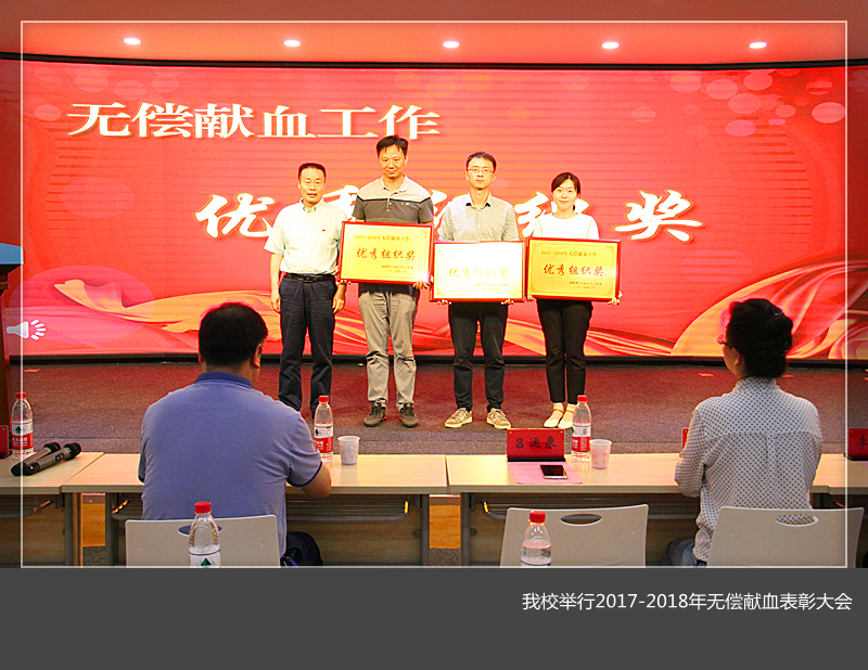 学生处副处长宣读了关于表彰2017-2018年无偿献血工作先进集体和先进个人的的决定,授予电气工程与自动化学院、计算机与信息工程学院、环境工程与化学学院3个学院为无偿献血工作先进单位,材料科学与工程学院王红等48名同学为无偿献血活动先进个人。