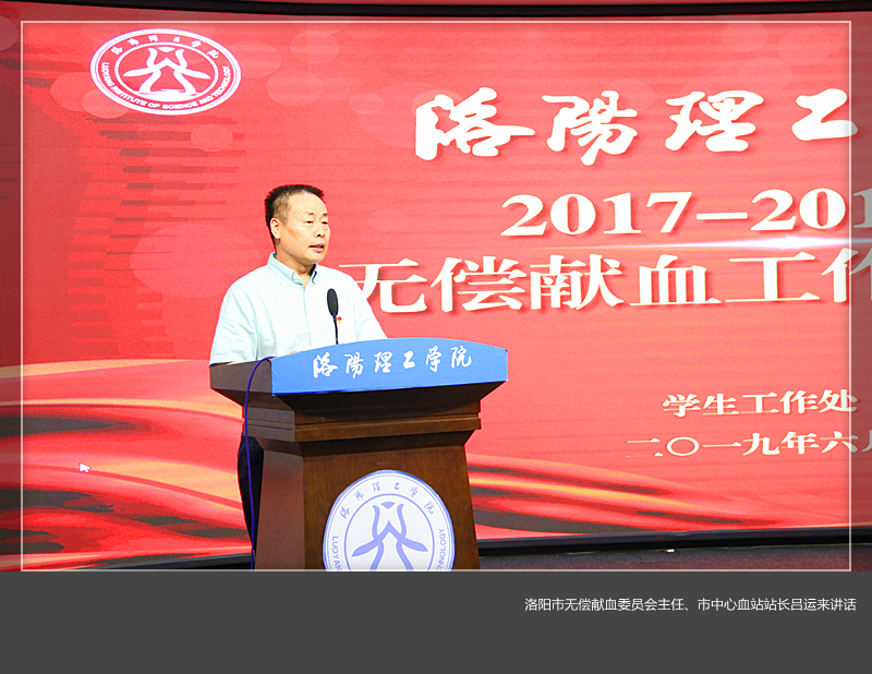 6月20日上午,我校2017-2018年无偿献血表彰大会在王城校区心理健康教育中心情景剧场召开。洛阳市献血委员会办公室主任、市中心血站站长吕运来、洛阳市献血委员会办公室副主任李雯和学校学生处负责人、二级学院学工办主任和受表彰的学生代表参加了表彰大会,会议由学生处副处长主持。