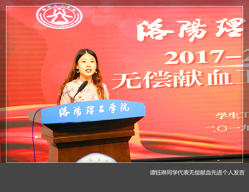学生处负责人代表学校对洛阳市中心血站领导给予我校开展无偿献血工作的指导帮助表示衷心的感谢,对年轻大学生踊跃参与无偿献血表达敬意。希望受表彰的学生继续用自己的行动传承奉献精神。为褒扬无偿献血者的无私奉献精神,倡导文明风尚,希望通过表彰大会激励更多的师生加入到无偿献血行列,大力弘扬社会主义核心价值观,共同谱写爱心事业的新篇章,在社会公益活动中做出更大的贡献。