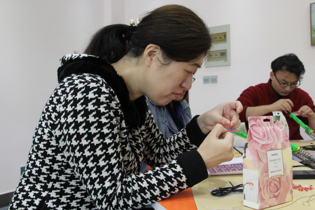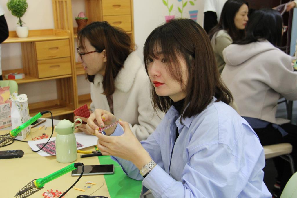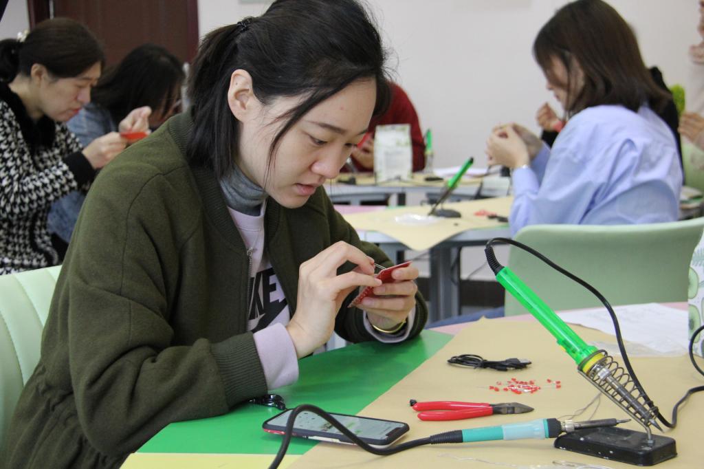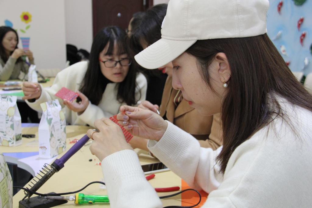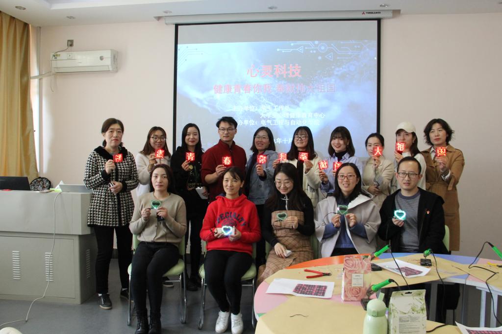 参与活动的老师们通过自己焊接字模,在体验心形灯制作的乐趣中不但放松了身心、释放了压力,还了解了家电维修小组的科研成果,同时感受到了心理健康与科技创新的精彩结合。