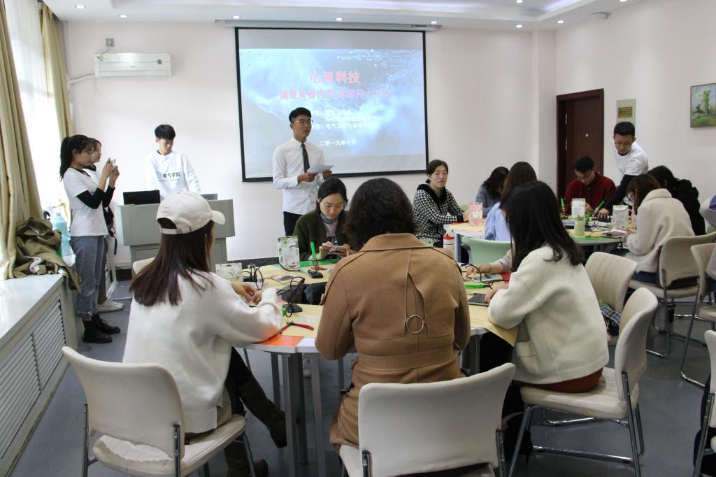 2019年10月31日上午九时,在王城校区团体辅导室开展了一场别出心裁的“心灵科技”活动,本次活动是由大学生心理健康教育中心主办,电气工程与自动化学院承办的。大学生心理健康教育中心主任、各学院二级心理辅导站站长、大学生心理健康教育中心全体教师以及部分电气工程与自动化学院家电维修小组同学们的共计20余人参与了本次活动。
