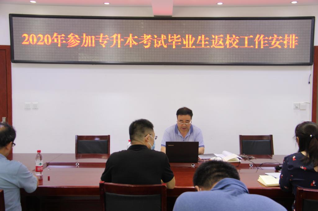 视频会上,张宽亮处长对《河南省教育厅关于做好 2020 年普通高等学校招生工作的通知》等文件进行了详细解读说明,对2020年参加专升本考试学生返校工作作出总体安排。他提出:一是全体学工人员要做好参加专升本考试学生信息排查和健康上报,摸准学生情况,按照上级文件要求,做好相关政策解读。二是要多措并举做好返校参加专升本考试学生的返校前、返校途中和返校后的疫情防护。三是要再接再厉,发扬前期毕业生返校复学中的不怕苦、不怕累的作风,全力保障毕业生顺利备考。
