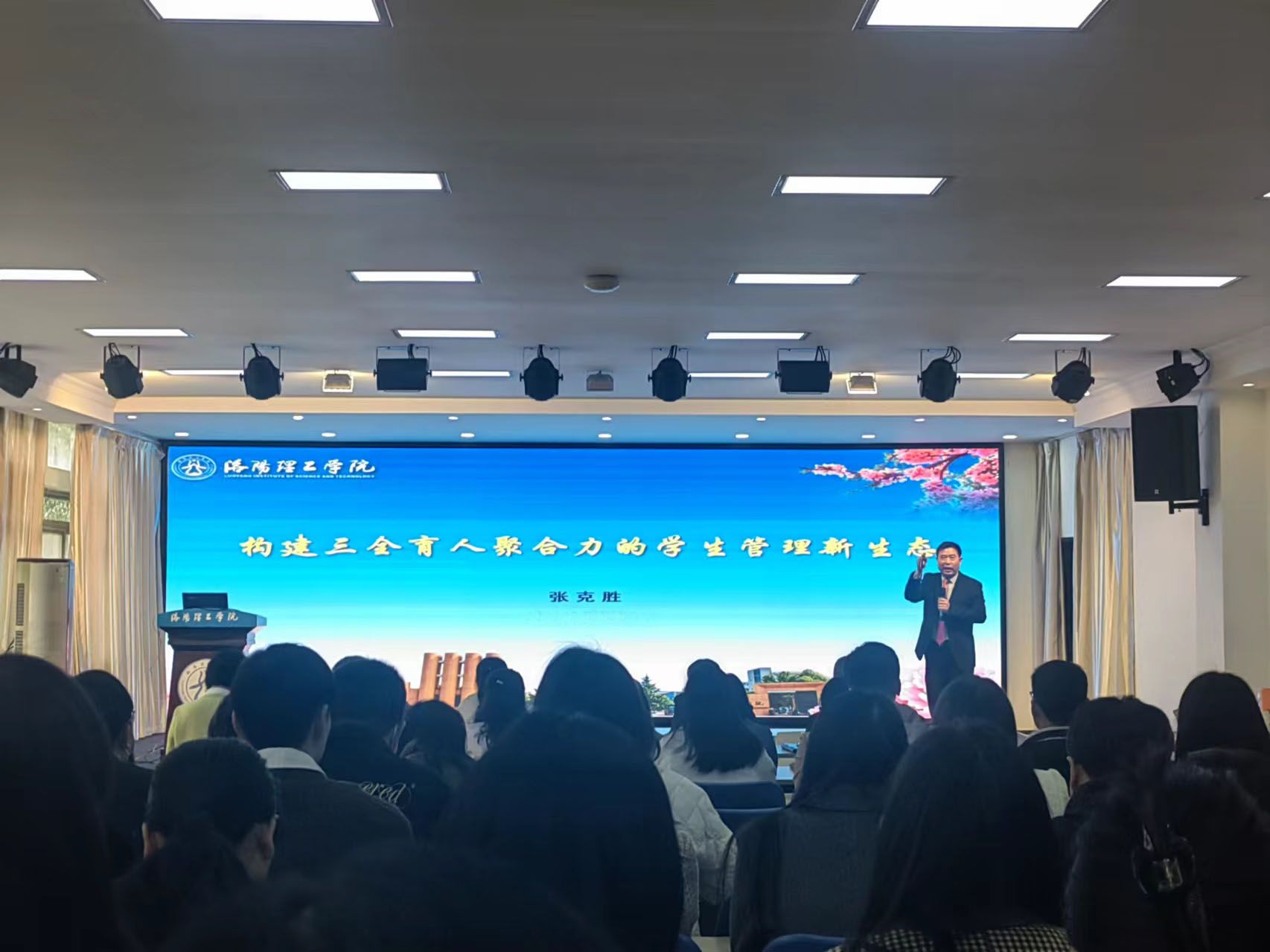 本次论坛的主题是“构建三全育人聚合力的学生管理新生态”。首先,由大学生心理健康教育中心主任卢爱新对春季开学出现的学生心理问题,结合配发的《关于开展洛阳腾博官网诚信为本专业服务2024年春季学期学生心理普查工作的通知》进行了讲解,安排近期学生心理工作并提出工作要求。