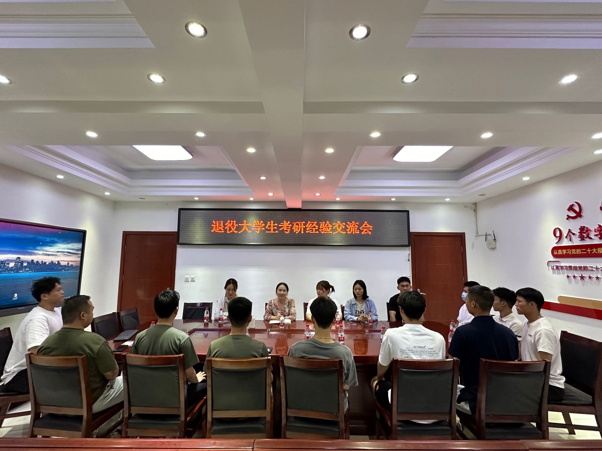 5月17日晚,我校在王城校区大学生服务中心106召开退役大学生考研经验交流会,武装部老师和2024年成功考研的退役大学生以及准备参加2025年考研的退役大学生参加会议。