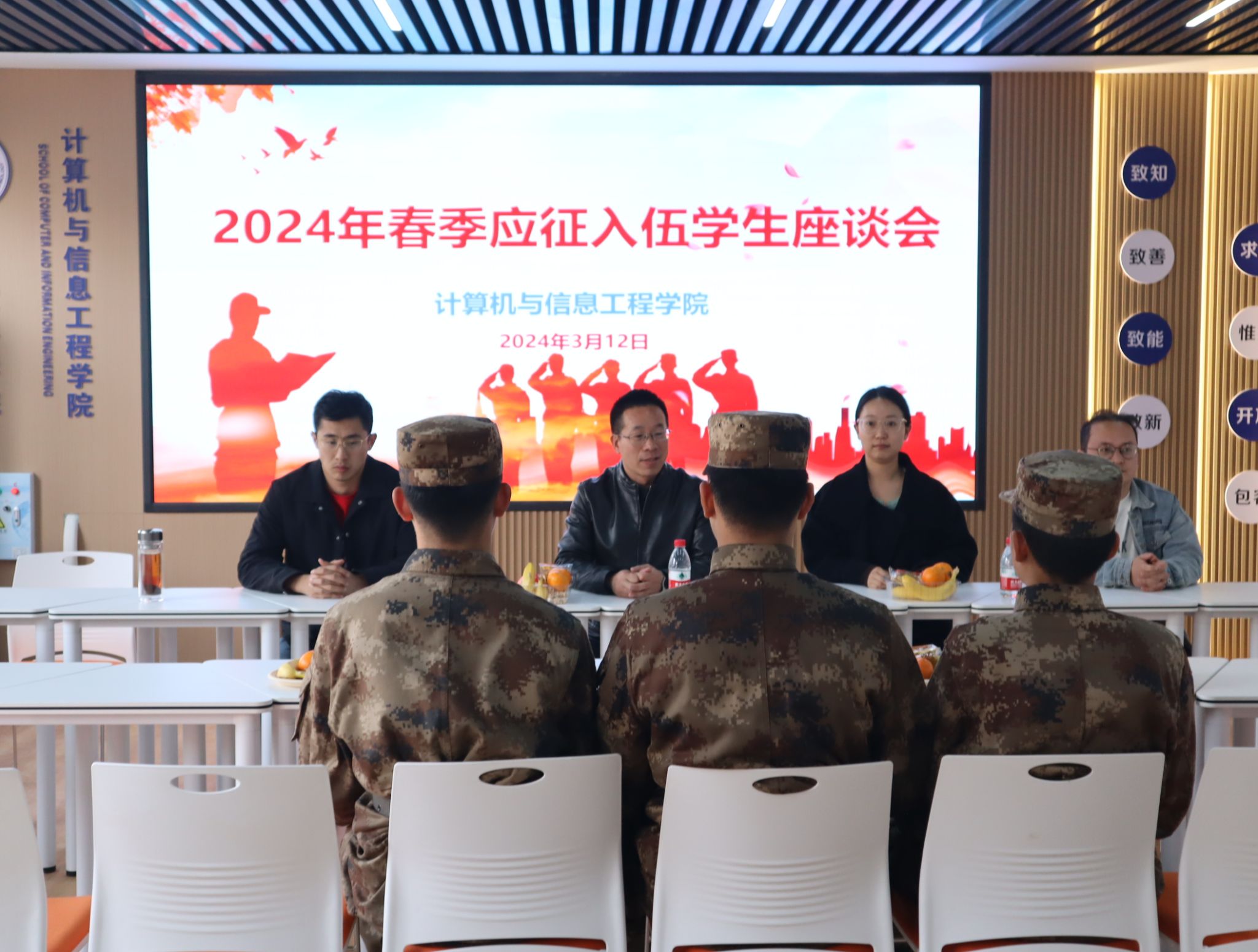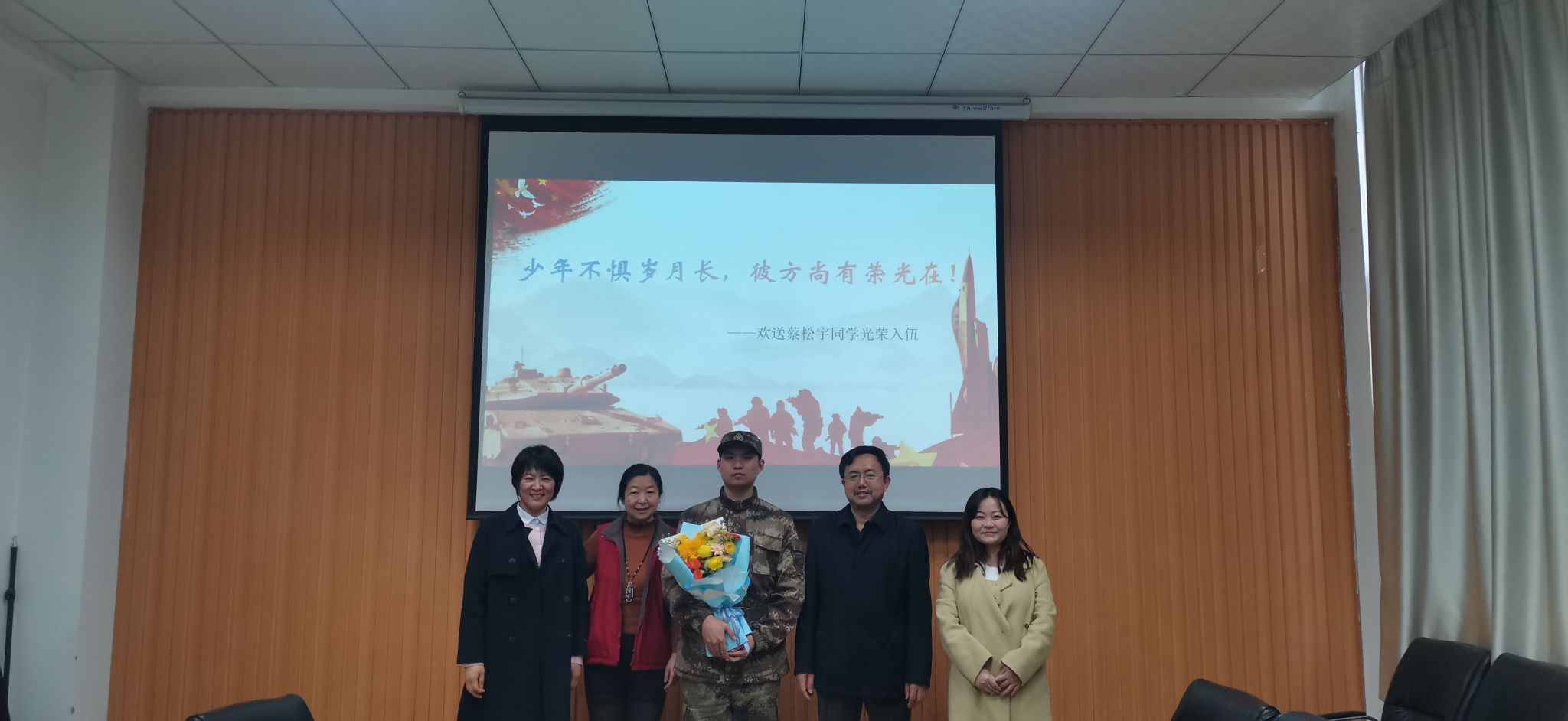 我校历年来高度重视征兵工作,始终把征兵工作作为落实国防教育的重要内容,把鼓励青年参军作为促进大学生成长成才的重要渠道。希望入伍的同志们在部队磨练意志、健全人格、强健体魄,胸怀大志,加强学习,练就过硬本领,服从命令,听从指挥,切实担负起维护祖国安全统和社会稳定的神圣使命,成为有用之材,在党和人民需要的地方建功立业。