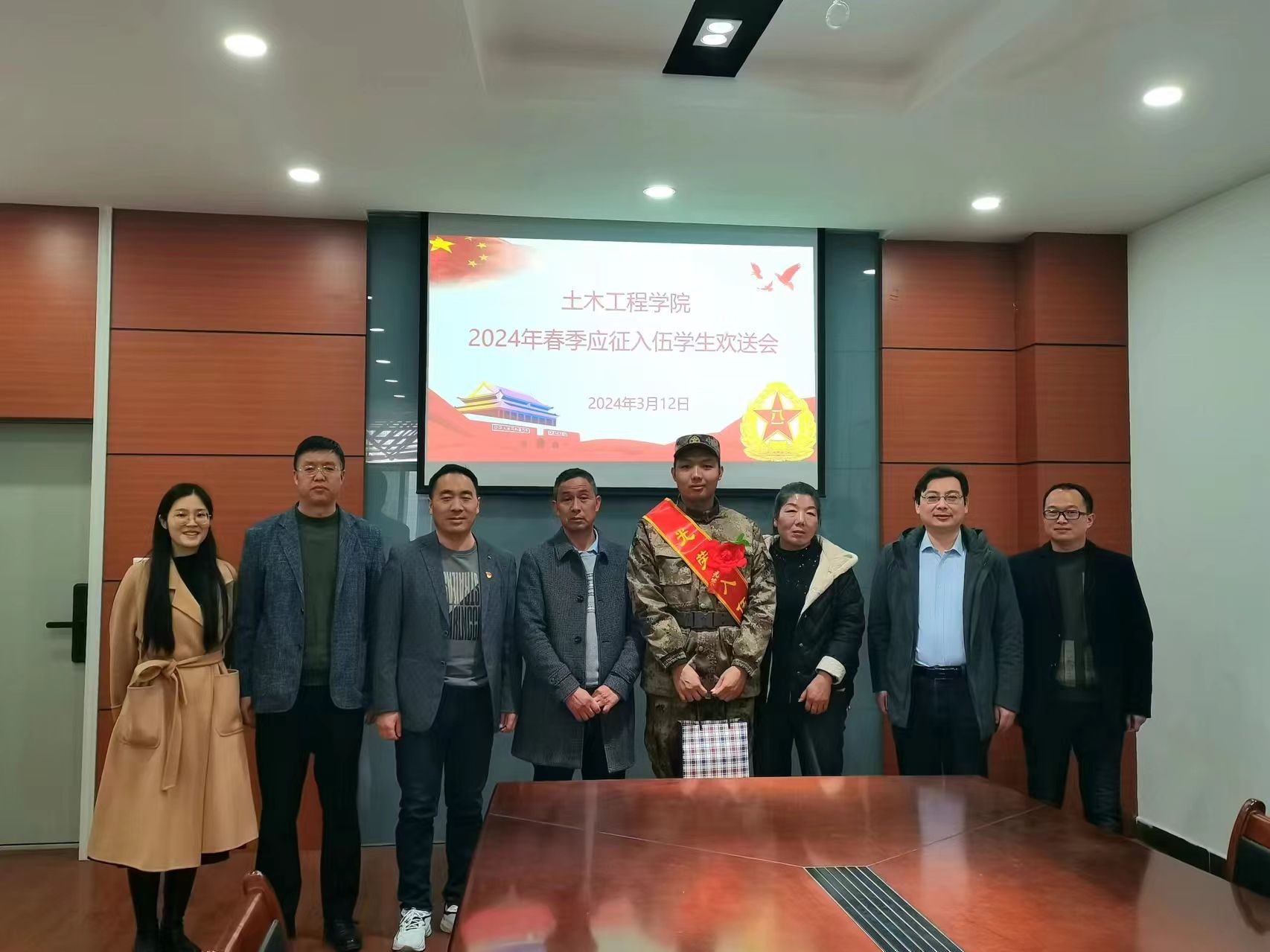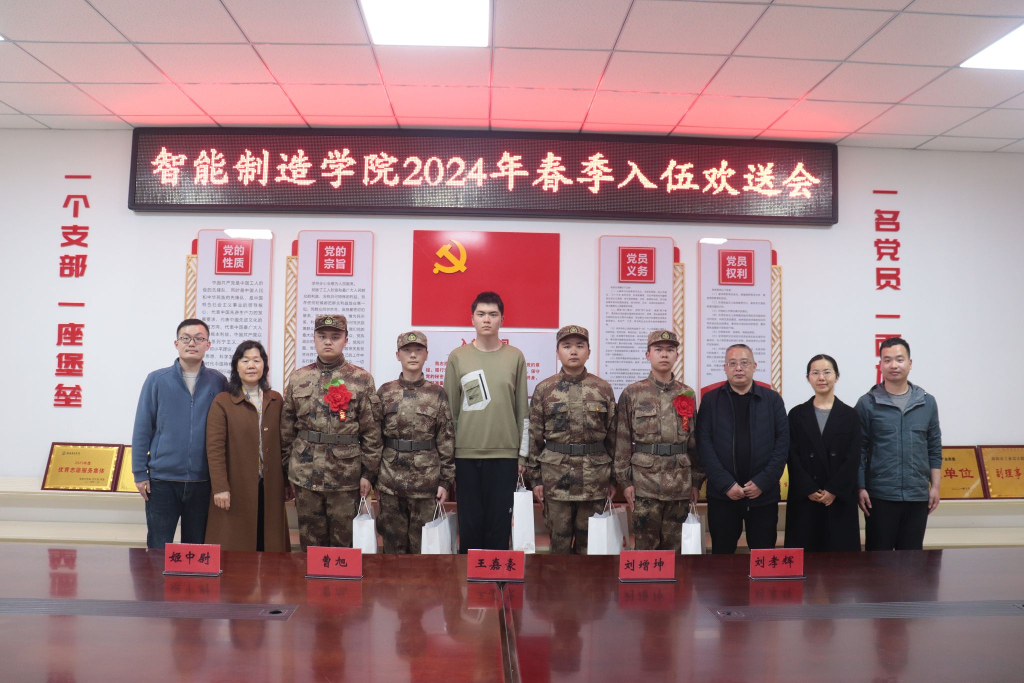 3月12日,各各学院采取不同的形式为预定兵入伍学生举行欢送仪式,学院领导向入伍同学表示热烈祝贺并寄予深切期望,希望入伍同学珍惜身穿戎装的机会,在军队这个大舞台上施展才华,在军营这个大熔炉里淬炼成钢。最后,各学院向入伍学生赠送纪念品并合影留念。