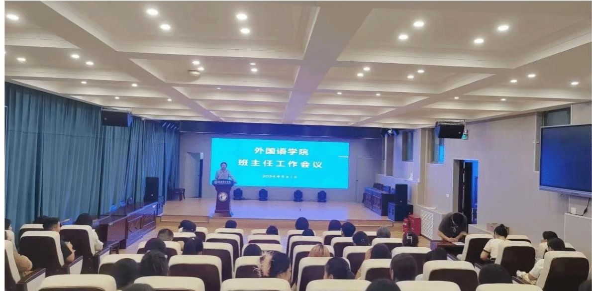9月1日下午外国语学院在XE206教室召开新学期班主任工作会议。学院领导班子、各班班主任、辅导员以及各班班长共同参加此次会议。会议伊始,张文学书记就新学期班主任工作的具体内容和要求进行了详细部署,强调班主任要密切关注学生的思想动态和学习状况,加强与学生的沟通与联系,及时发现和解决学生在学习和生活中遇到的问题。接着,易明院长进一步强调了班风建设对于营造良好学习氛围的重要性。她鼓励班主任老师把握新学期契机,发挥自身专业优势,进一步推动班级建设,提升班级凝聚力,为学生创造一个更加和谐、积极的学习环境。会议结束后,各班主任到达各自负责的班级,召开班会。他们从学科建设、学习生活、未来规划等方面与班上同学进行了深入交流,帮助同学们建立新学期的学习目标,树立实现目标的信心。