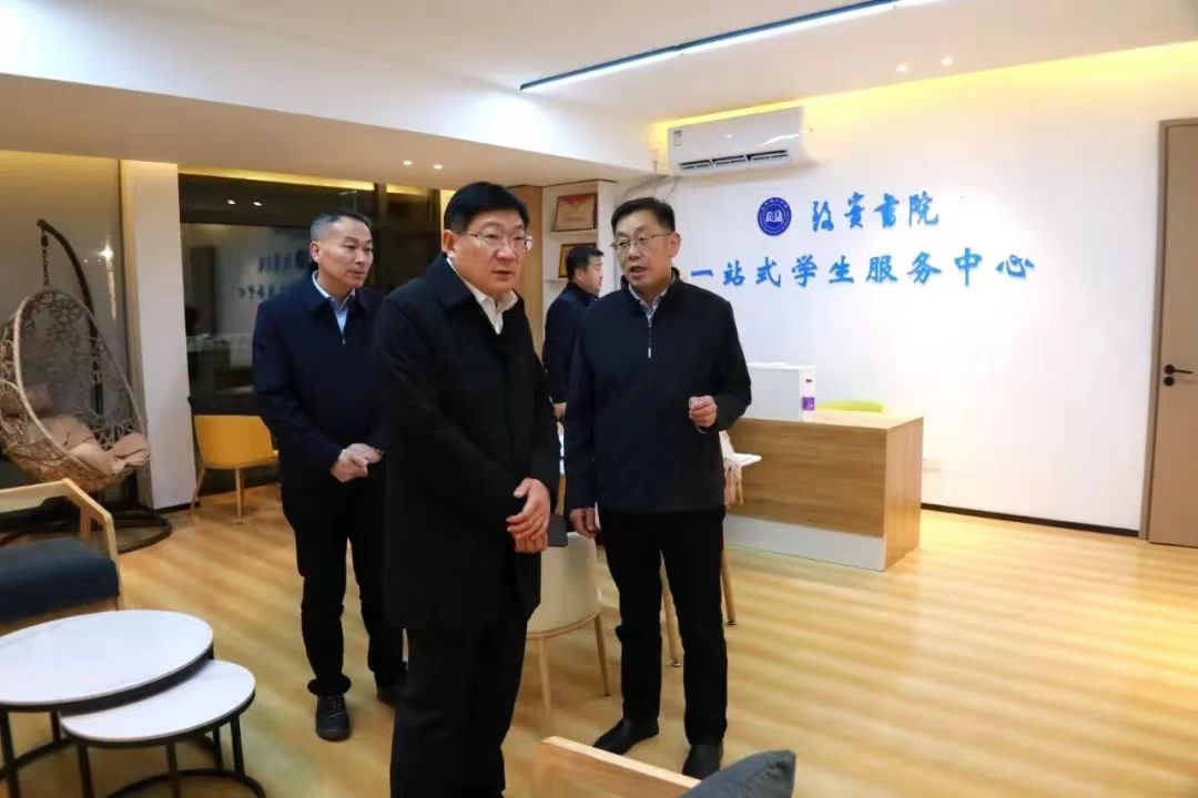 在实地查看致实书院“一站式”学生事务服务大厅运行情况,听取有关汇报后,卢志文充分肯定了我校“一站式”学生社区综合管理模式的工作进展,并对下一步工作推进提出了具体要求。