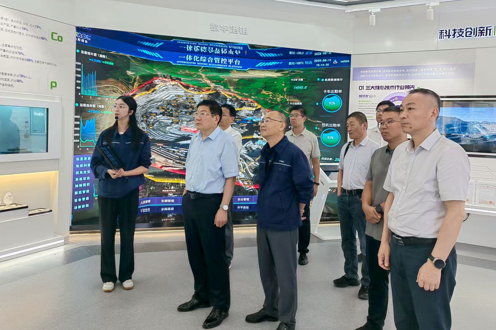 调研过程中,卢志文一行先后实地考察了洛钼集团三道庄钼矿、洛钼研究院生产技术中心,听取了关于智慧矿山一体化综合管控平台运行情况的介绍,观看了钻、铲设备远程精准控制现场演示,充分了解了洛钼集团的生产经营情况和技术水平。