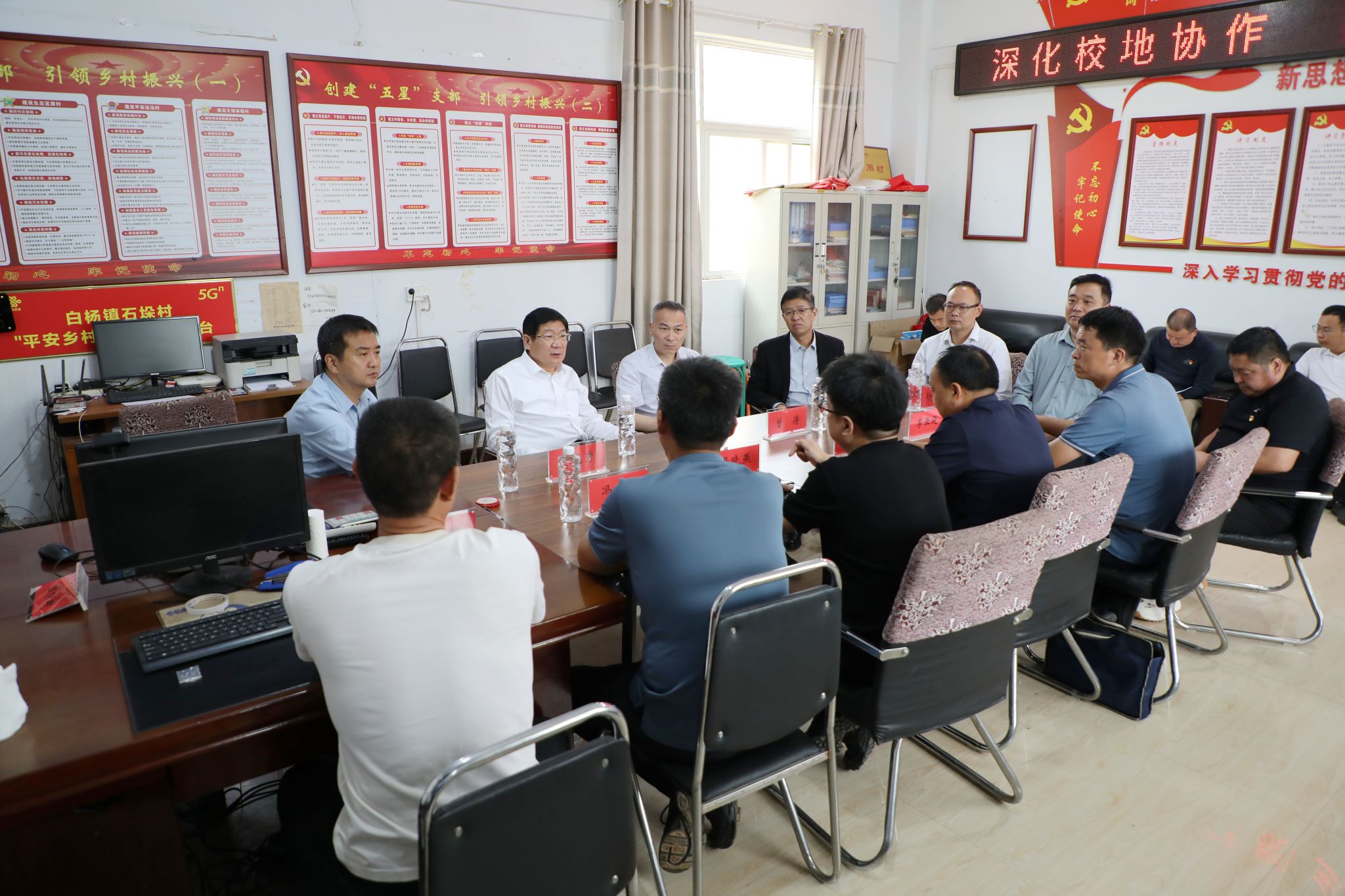 卢志文听取了我校派驻陡沟村和石垛村第一书记的工作汇报,对驻村工作队在党建引领、产业增收、民生改善、乡风培育等方面取得的成效给予肯定。围绕深化校地协同、助力乡村振兴,他向驻村工作队提出四点要求:一是党建共抓强根基,依托学校党建资源,协助帮扶村规范“三会一课”、培育党员骨干,推动基层党组织提质增效;二是产业共推促增收,发挥学校学科、科研优势,为中药材种植、秸秆循环利用等项目提供技术支撑,探索“校村+合作社+农户”模式,拓宽产销渠道;三是资源共享惠民生,持续开展“文化下乡”“科技助农”“教育帮扶”活动,深化高考志愿指导、研学实践、技能培训等服务,破解群众“急难愁盼”;四是校地共融谋长远,加快推进乡村振兴综合服务平台建设,整合人才、科技、教育资源,构建可持续帮扶机制,为白杨镇乡村全面、快速振兴注入“洛阳理工力量”。